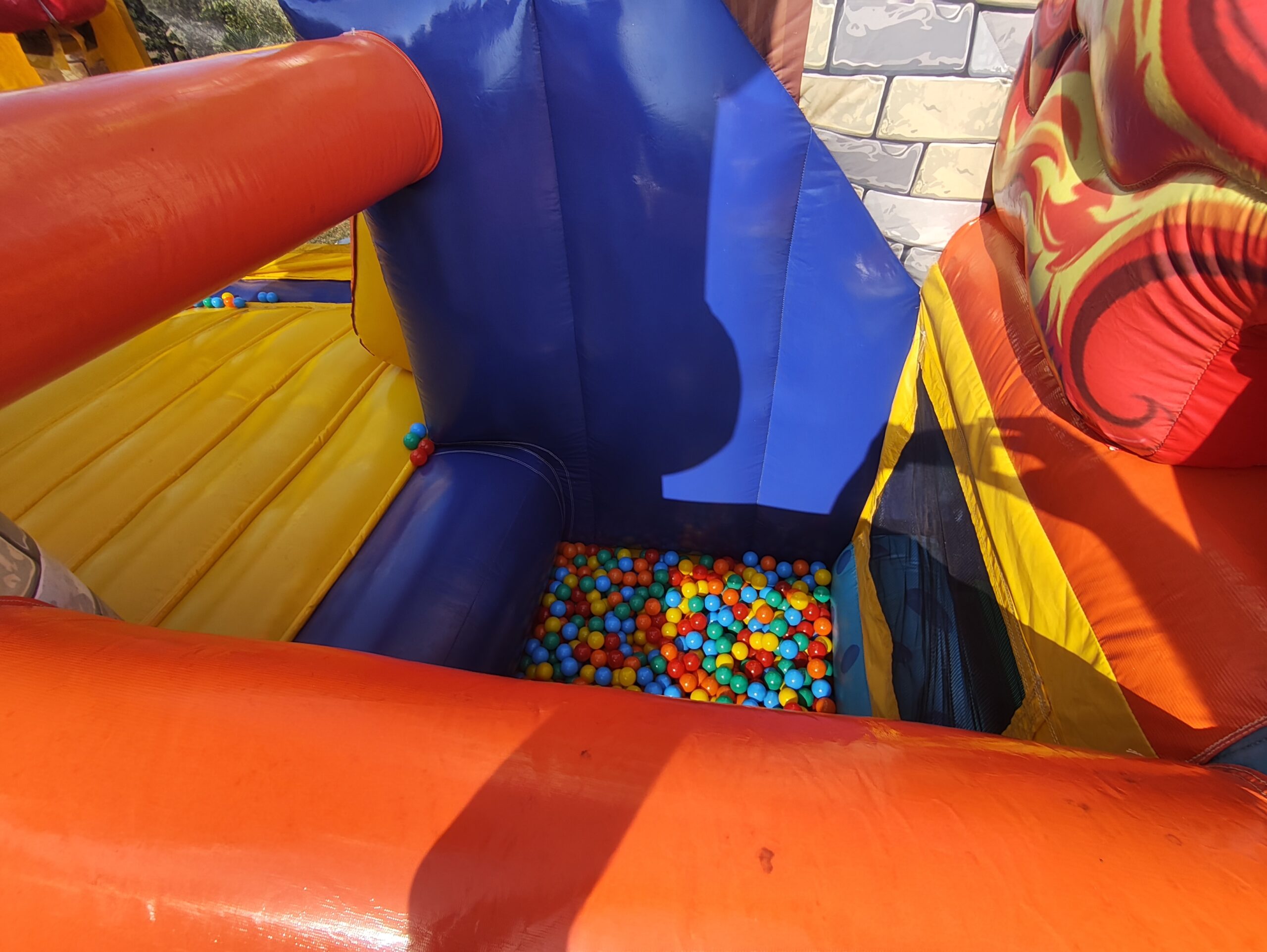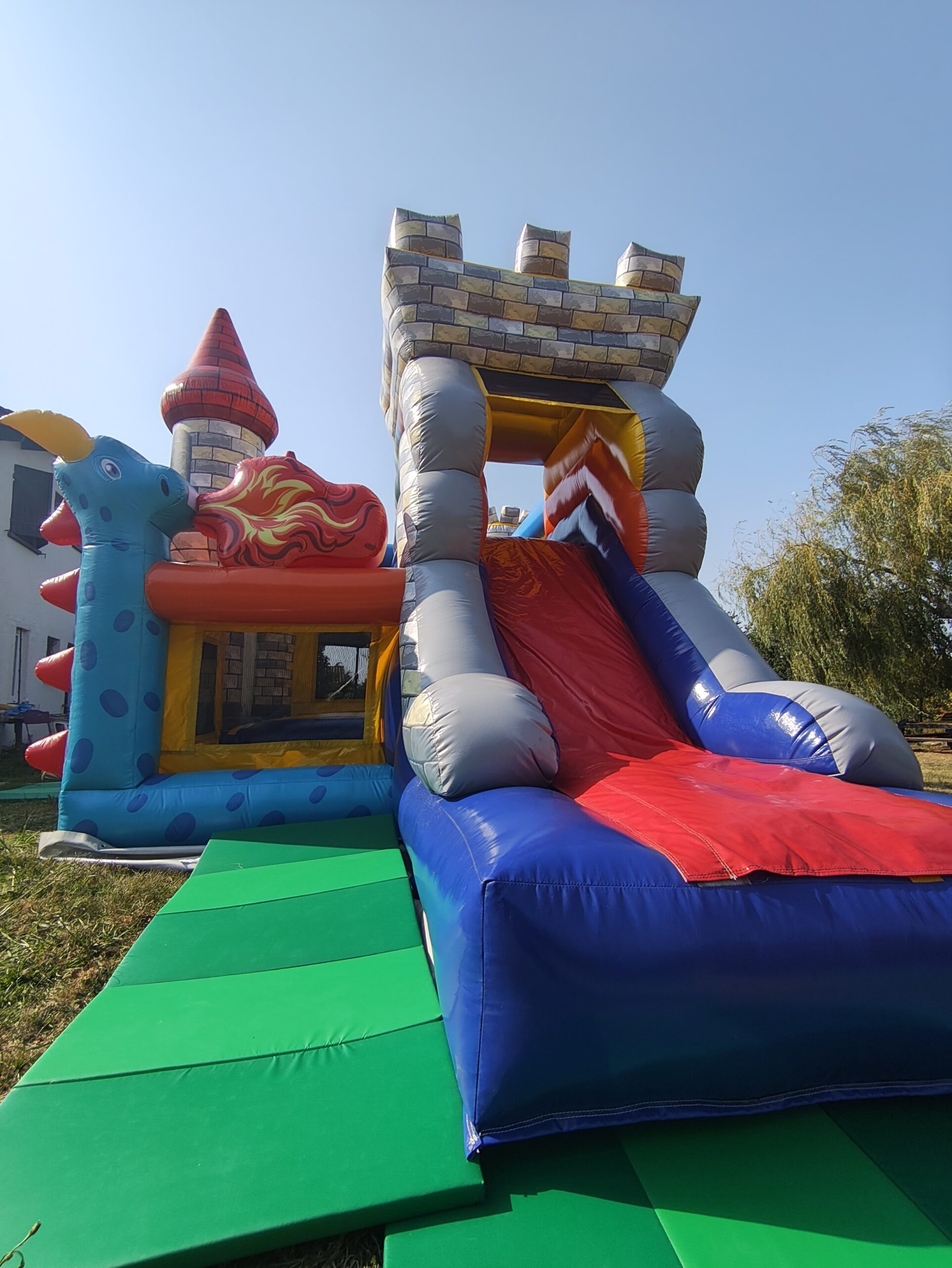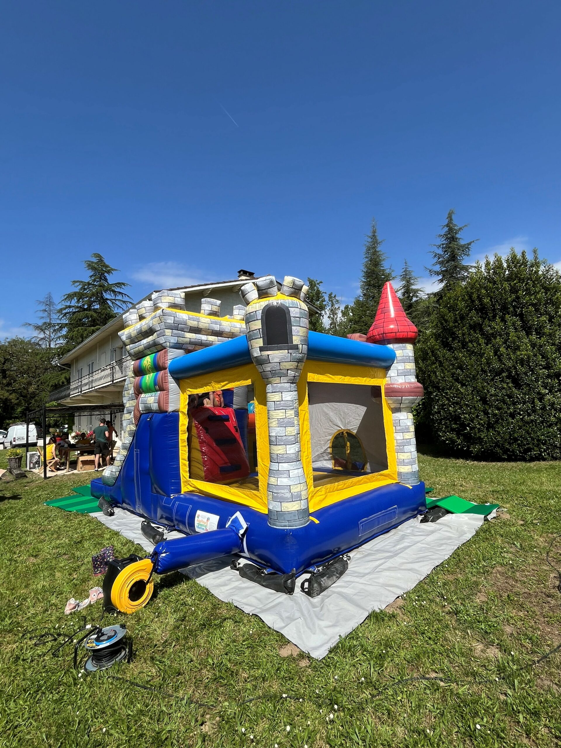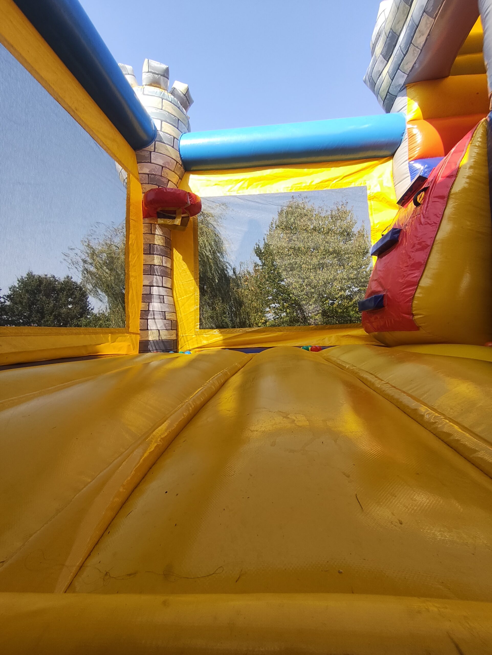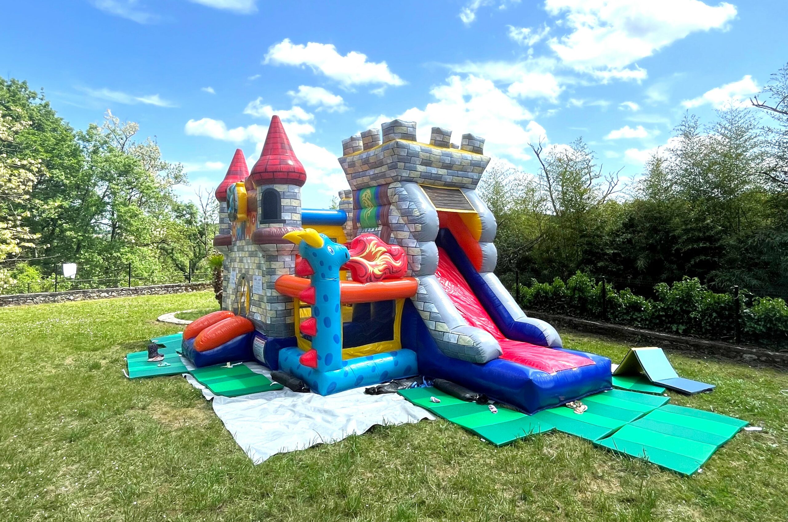 À l’intérieur, les enfants peuvent sauter, rouler, rebondir et inventer mille histoires sur le sol trampoline. Les plus téméraires graviront la zone d’escalade avant de s’élancer sur le toboggan gonflable pour une descente pleine de sensations. Entre glissades, défis et jeux collectifs, chaque instant passé dans cette structure devient une véritable épopée médiévale.